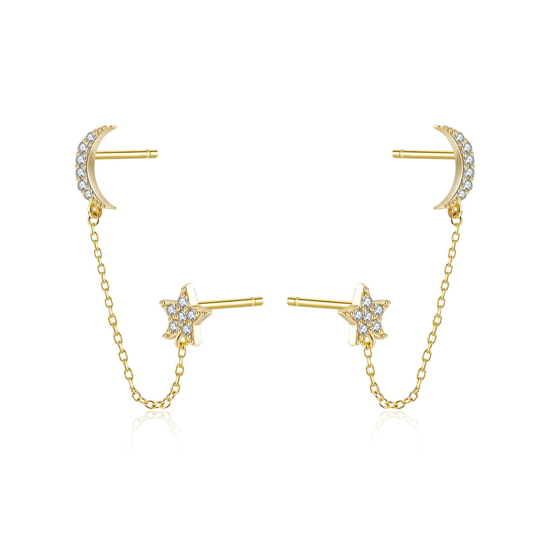 Moon + Star Chain Stud Earrings