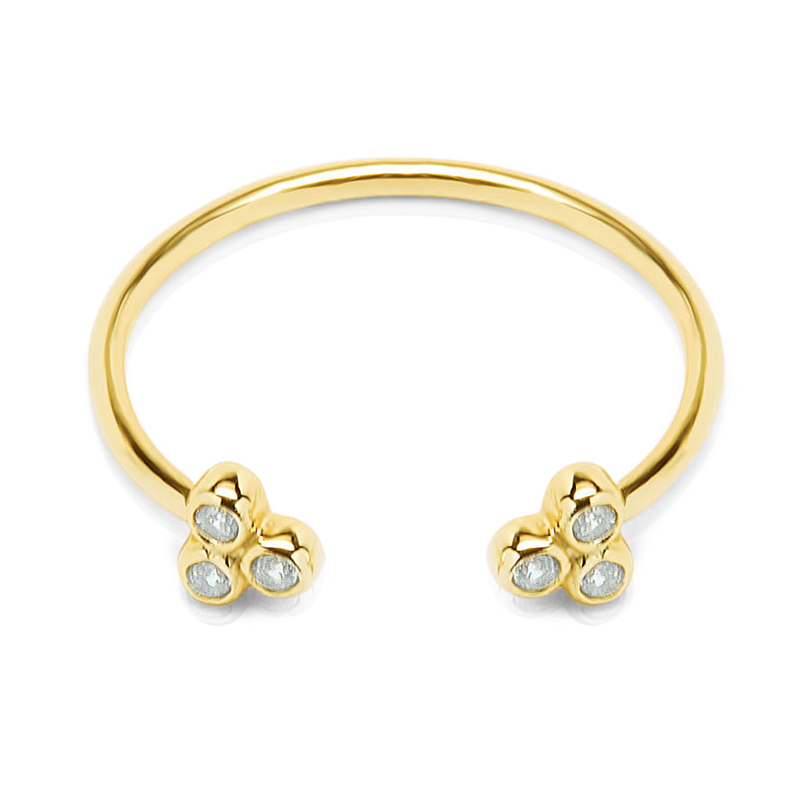 Gold Plated open tiny three white zirconias ring: everyday minimalist jewelry. Perfect to stack with other simple rings from Bellaboho. Free shipping for all orders.